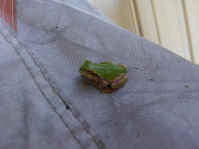 バイクカバーにいたアマガエルちゃん。