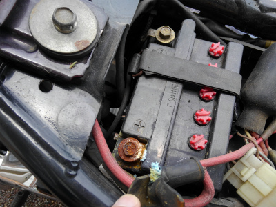 バッテリーのプラス端子が千切れとるやないか・・・