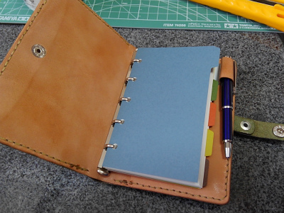 ペンの厚みを考えずに革切ったから・・・。
