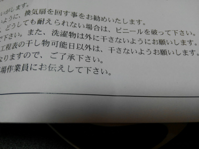 当然塗料を使うので臭気問題に対する注意書きが配られたのですが