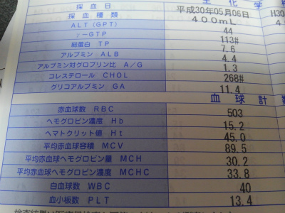 先週実施した献血の血液成分結果が送られてきました。