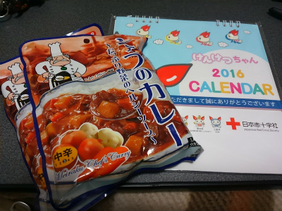 レトルトカレー2個と来年の卓上カレンダーをいただけましたw