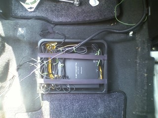 いすをスライドさせたときに配線を噛みこまないようにまとめます。