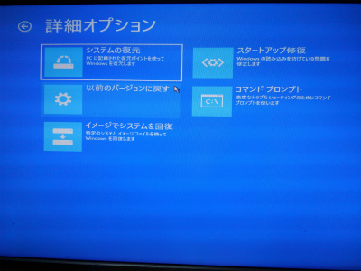 とりあえずはセオリー?に乗っ取って修復ディスクで起動を試みる。