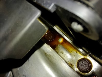 ・・・怪しそうなヘッドカバーのねじとオイルラインのねじを