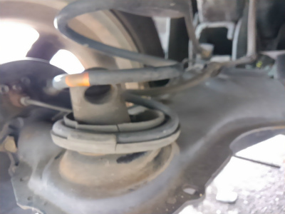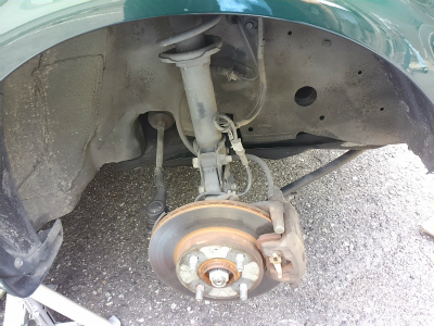 ブレーキホース,ABSセンサーハーネスの固定を外してから