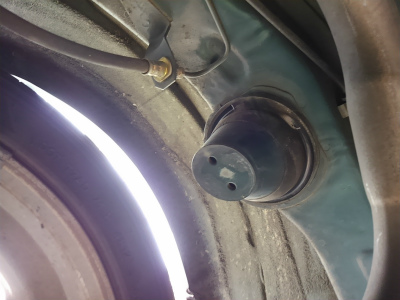 ↓真ん中の凸がバンプストッパ。 サスクロス下に固定ナットあります。