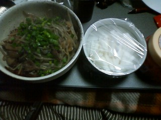 晩御飯は鶏のもやし生姜焼き炒め~。