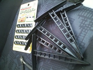 配線止めと、ナビ固定用の土台(テントのペグ)。