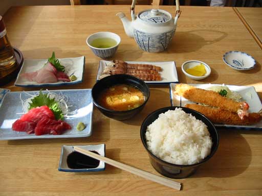 お昼ご飯は一番安いセット¥2000にまぐろの刺身を追加で。