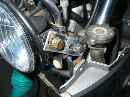 ステーは最初まっすぐにしてスペーサーかましてたのですが、ボルト頭とカウルが干渉して取り付かなかったので曲げました。