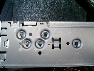 他のメーカーも同じところにつけることはできますが、製品にマーキングなしで簡易取り説にも記載なし。