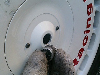 あとこのホイール、ナットがある部分も全部隠すセンターキャップがつくんです。