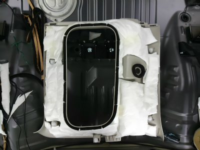 ルーフボウを避けてシンサレートを2枚重ねて貼ります~。