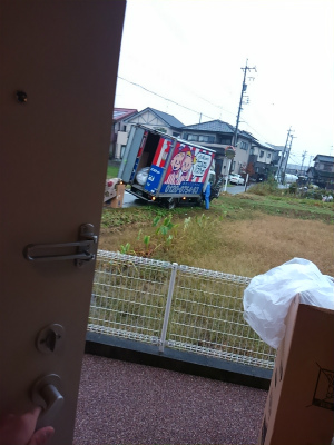 前の道が狭いのですが,宅配トラックはそこに止めてたのね。
